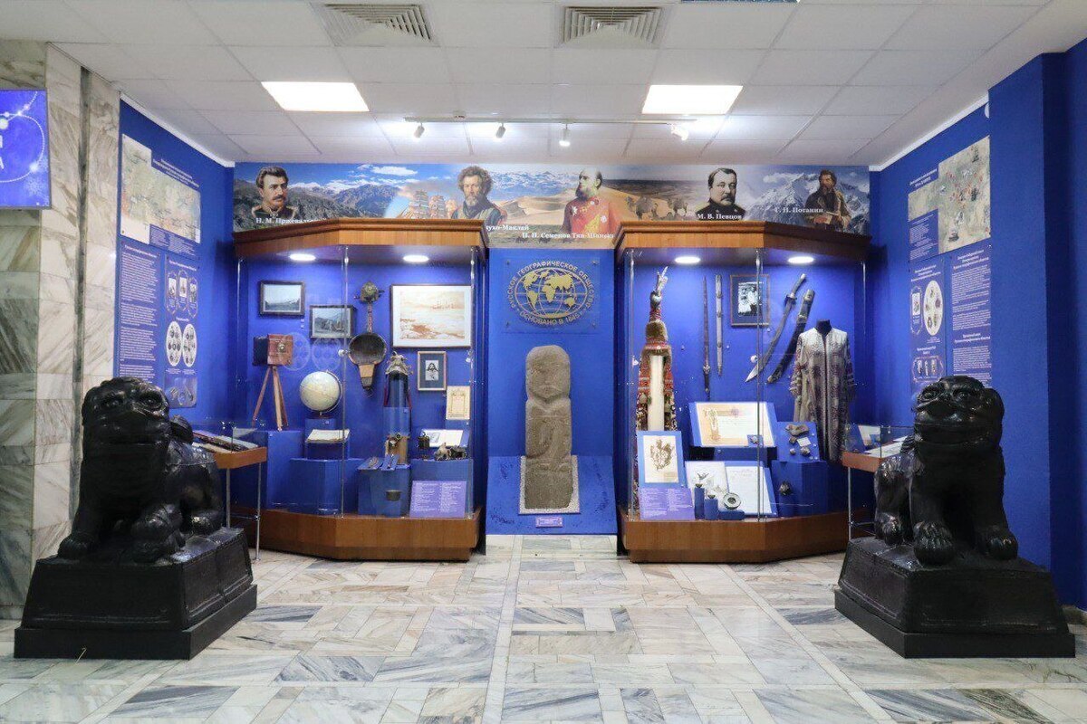 Посетители смогут проследить путь от героических экспедиций XIX века до современных научных проектов. В экспозиции — подлинные артефакты: карты, редкие издания, экспедиционное снаряжение, архивные документы, дневники, фотографии, а также этнографические, геологические и ботанические коллекции. Особое внимание уделено деятельности РГО в годы Гражданской войны, включая работу Временного совета в белом Омске.
