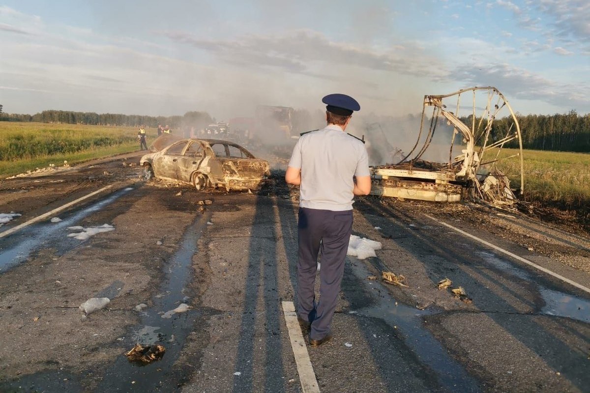 2 августа, на трассе Омск — Тюмень, в районе Тюкалинска и Крутинки, произошел серьезный пожар. Подписчик паблика "Омск.Live" опубликовал информацию о происшествии, отметив, что огонь охватил три фуры. От огня поднялся столб черного дыма.