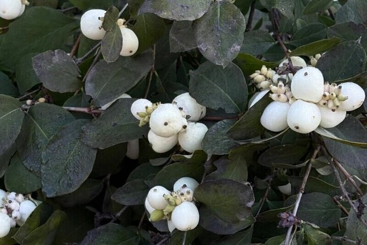 Речь идёт о снежноягоднике белом — популярном декоративном кустарнике, который часто высаживают в общественных пространствах из-за его неприхотливости и красивого внешнего вида. Даже после того как с деревьев опадает листва, на ветках снежноягодника ещё долго держатся гроздья белых ягод, похожих на маленькие снежные шары.